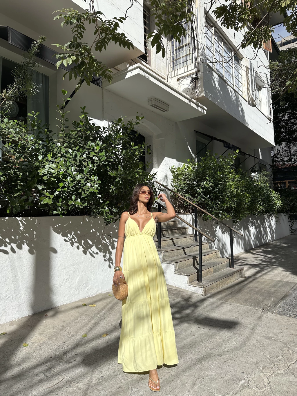 Vestido em viscolinho com ajuste nas costas, e regulagem nas alças, que permitem que o vestido se ajuste a todos os corpos. A saia possui modelagem bem solta, com muito movimento e que dá fluidez ao andar.